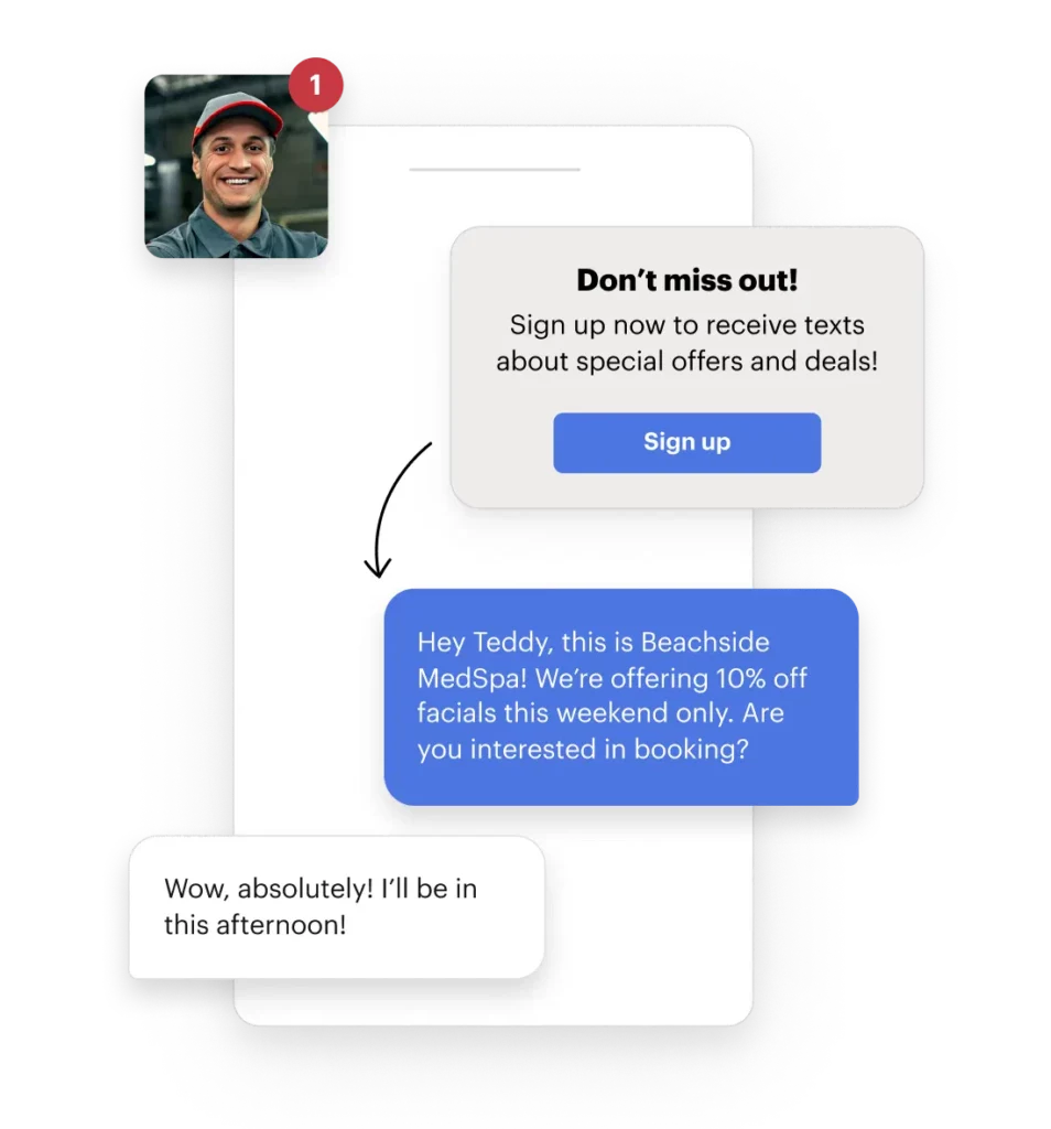 Send two-way text campaigns that keep customers engaged with your Med Spa’s promotions, events, and referral programs. Attach images seamlessly to stay on brand and top of mind.